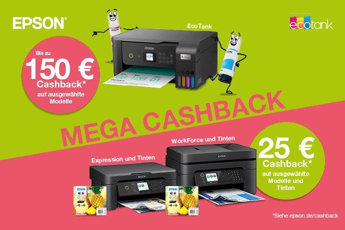 Cashback-Angebote für ausgewählte EcoTank-, Expression- und WorkForce-Drucker. Das Angebot gilt für Käufe, die zwischen dem 01.10.2025 und dem 31.01.2026 getätigt werden. Es gelten Teilnahmebedingungen.