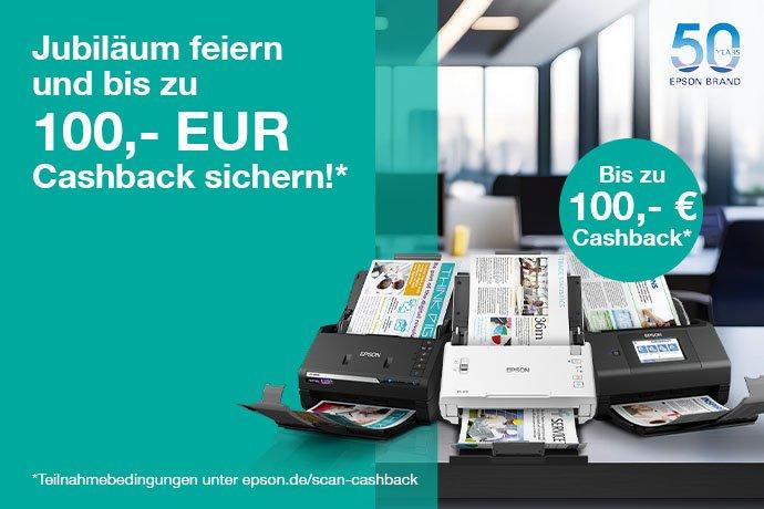Feiern Sie mit uns 50 Jahre Epson und sichern Sie sich bis zu 100,-EUR Cashback auf ausgewählte Epson Scanner.
