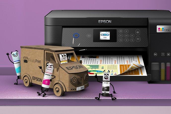 ReadyPrint ist der Tintenabonnementservice von Epson, der Tintenlieferungen nach Hause beinhaltet, bevor die Tinte zur Neige geht, basierend auf einem monatlichen Tarif, der auf Ihr Druckervolumen zugeschnitten ist.